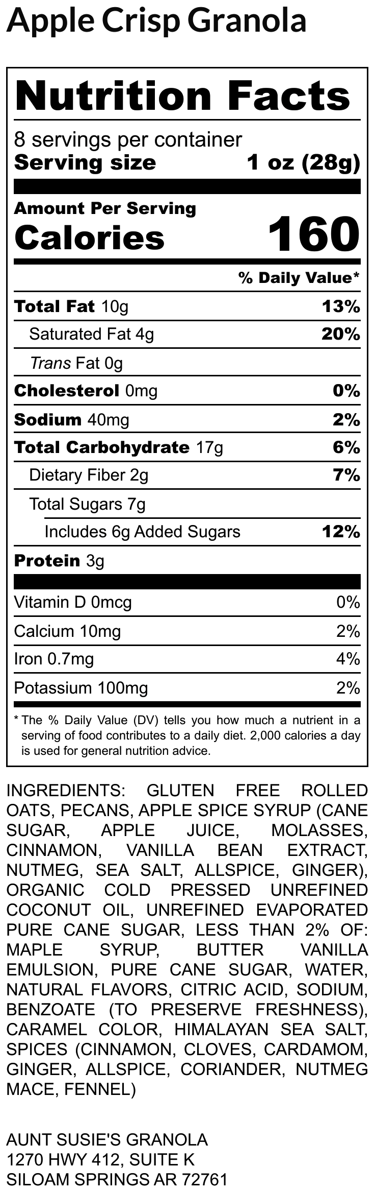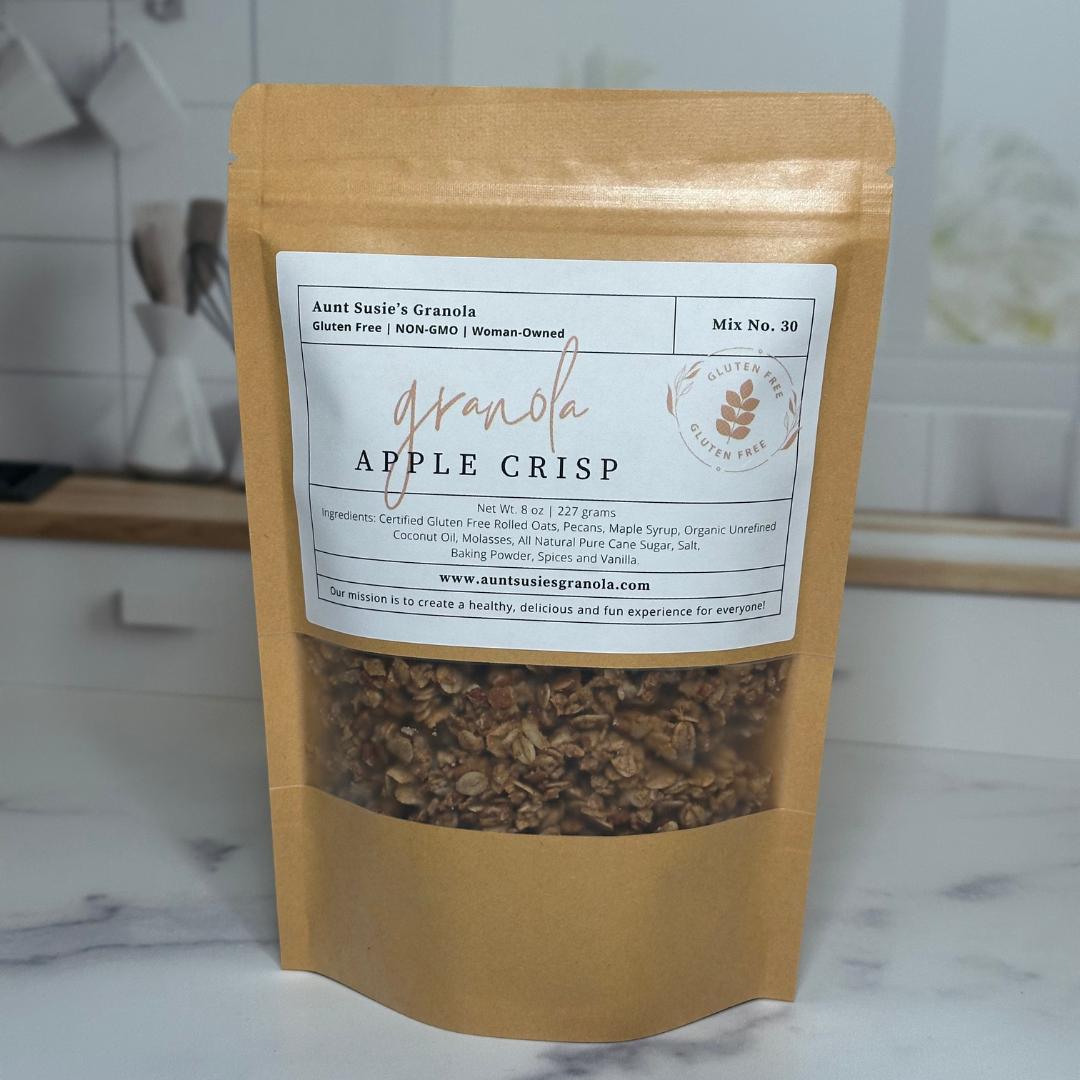 Apple Crisp Granola reminds me of my Mammaw and a fragrant kitchen with all the comforts of home. It's a simple granola, but one that is full of flavor with the special addition of a gourmet Apple Spice Syrup made by Siloam Syrups. We are proud to collaborate with Siloam Syrups on this flavor and hope to do more collabs in the future!!